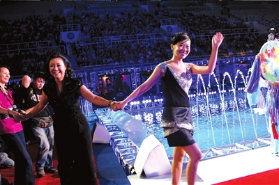 編劇蘭曉龍率《士兵突擊》原班人馬上臺,主創們把水立方當作鋼七連的訓練場,喊出“不拋棄、不放棄”的口號。記者趙楠楠