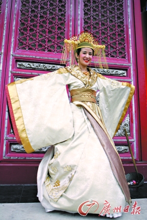 頭頂黃金冠,身披金色鳳袍,脖子上還扣著一串沉甸甸的金鏈子,這是吳君如所有參演的王晶電影里最賢良淑德、精美絕倫的一次。不過,在橫店白天30攝氏度的高溫下,這套華麗的“戰衣”吳君如一穿就得12個小時。此外,吳君如還得忍受對女兒的相思之苦!拔叶7天沒有見她了!還好過兩三天就拍完了!彼嬖V記者,因為舍不得女兒,之前來劇組報到的時候自己特別選了香港到杭州最晚的一班飛機,為的就是要賴到最后一分鐘,多陪女兒一會兒!瓣惪尚炼几摇对V’ 了。他在上海拍《十月圍城》,問我為什么不能先飛到上?纯此賮頇M店。說實話,我都沒想到他。我只是想,從上海到橫店要多花兩個小時,我還是把這點時間陪女兒好了!