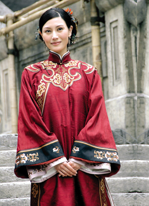 昨天,婚后首度拍戲的李嘉欣,穿一身華麗而又低調(diào)的酒紅色古裝出現(xiàn),發(fā)髻盤起,淺笑吟吟,站在“舊中環(huán)”的石階上,回眸一笑百媚生。