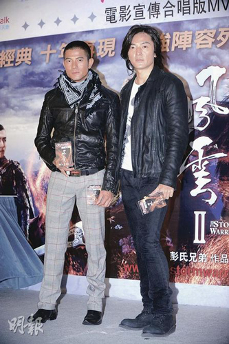 中新網11月23日電 郭富城及鄭伊健 昨日出席電影《風云II》合唱版MV啟播禮,早前有指兩人因爭唱主題曲而鬧不和,城城說:“主題曲原本由我獨唱,歌名《風云義》亦由我想出來,不過電影公司提議合唱以配合宣傳。”城城表示伊健先錄音,他聽過后覺得伊健表現非常好,而他入行以來未試過與男生合唱,所以感覺很新鮮。