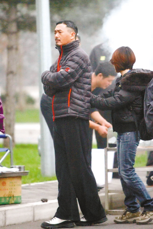 發(fā)哥的氣場彌散在整個片場。記者注意到一個細(xì)節(jié),由于當(dāng)日圍觀者眾,說話聲、手機(jī)鈴聲、摩托車轟鳴聲交錯而起,某次剛剛“預(yù)備”,立時就響起手機(jī)鈴聲,導(dǎo)致姜文喊停,此時發(fā)哥從臺上朝這個方向瞥了一眼,臉露厭煩,圍觀村民立馬小聲,頓時安靜。