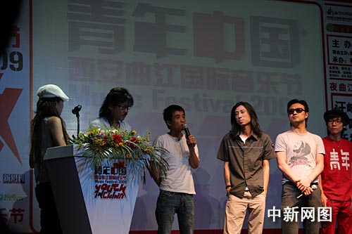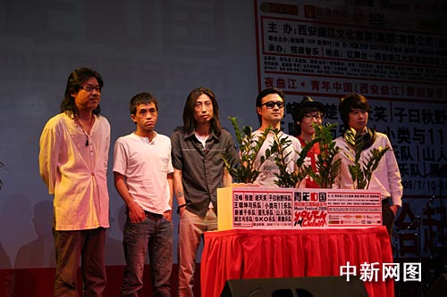 中新網7月2日電(楊洋) “青年中國(西安曲江)國際音樂節(jié)——2009新聞發(fā)布會暨青年音樂發(fā)展計劃啟動儀式”于7月2日在京舉行。汪峰、張楚、謝天笑等知名音樂人到場助威,現場氣氛火爆。本次音樂節(jié)將于7月10日在西安曲江開幕,是國內第一個時尚視覺音樂節(jié)。