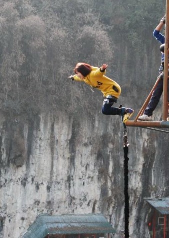 譚志玲在所有的選手當(dāng)中,一向以膽小著稱,認(rèn)識(shí)她的人都覺得她是一個(gè)文靜、可愛、膽子又非常小的女生。但是在“與JAY同型”的選秀活動(dòng)中她做出了驚人的決定,挑戰(zhàn)自己膽小的性格,去冒險(xiǎn)蹦極。屬于極限運(yùn)動(dòng)的蹦極,敢于挑戰(zhàn)它的人都在少數(shù),像譚志玲這樣?jì)尚〉呐ヌ魬?zhàn)更是少之又少。而她這個(gè)勇敢的決定也讓她體驗(yàn)了一把勇敢者的刺激和高空墜落的快樂。在她的博客中她這樣寫道:“我不斷努力的去追逐自己的夢(mèng)想!不管路途中遇到多少挫折都要堅(jiān)強(qiáng)的面對(duì)與克服!當(dāng)你最后成功的那一刻那你就是最“型”的!就像蹦極一樣!很多人都想讓自己成為很勇敢的人,去做很多人不敢嘗試的事!可是但真的面臨的時(shí)候心里又會(huì)打退堂鼓!但其實(shí),當(dāng)你站上蹦極臺(tái)你已經(jīng)不能后退了,如果你選擇放棄那你永遠(yuǎn)就只會(huì)原地踏步!你不去挑戰(zhàn)你又怎么知道自己還可以走多遠(yuǎn)呢?”