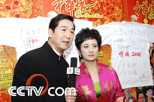 據(jù)悉,這臺(tái)賑災(zāi)義演由中央電視臺(tái)國(guó)際頻道和鐵道部政治部聯(lián)手主辦,《中華情》劇組協(xié)同中國(guó)鐵路文工團(tuán)緊急承辦!吨腥A情•情暖2008》賑災(zāi)慰問(wèn)特別節(jié)目以文藝節(jié)目的形式慰問(wèn)因冰雪災(zāi)害滯留在火車(chē)站群眾和奮戰(zhàn)在鐵路戰(zhàn)線的職工,同時(shí)外拍攝制組,登上從北京出發(fā)的“農(nóng)民工專(zhuān)列”追蹤報(bào)道廣大乘客,特別是那些參加奧運(yùn)場(chǎng)館建設(shè)的農(nóng)民工弟兄回家過(guò)年的急切心情,同時(shí)表現(xiàn)鐵路職工的艱苦奉獻(xiàn)精神,將溫暖帶給冬日中焦急等待回家的人。