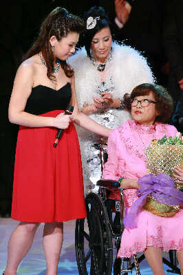 去年,鄭欣宜(左)、肥肥、汪明荃亮相TVB臺慶晚會。
