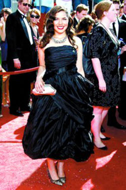 電影大明星、監(jiān)制迷你劇集《約翰·亞當(dāng)斯》獲提名的湯姆·漢克斯也同夫人一同現(xiàn)身紅毯,憑借《伯納德與桃瑞絲》獲提名的蘇珊·薩蘭登也讓紅毯“星味”大增。去年斬獲艾美獎喜劇類最佳女主角的“丑女”亞美莉卡·弗雷拉一直深受觀眾喜愛,但今年的她胖了很多,一身并不合體的黑裙讓人實在不敢恭維,相比《丑女貝蒂》中的配角維妮莎·威廉姆斯一身山水畫風(fēng)情的長裙黯然失色,只不過“貝蒂”更具喜劇效果。