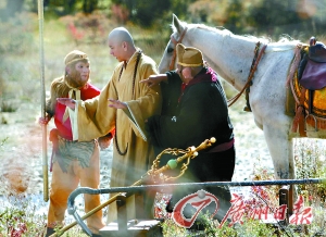 張紀中執導的新版《西游記》久久沒有動靜,由陳司翰、印小天、劉曉慶、韓雪等知名藝人加盟的50集浙江版《西游記》近日已在香格里拉悄然開機,唐僧的扮演者陳司翰、豬八戒的扮演者謝寧以及孫悟空的扮演者費洋上演對手戲,主要人物造型浮出水面。