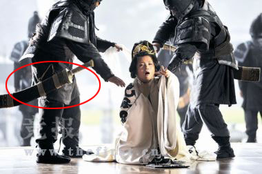 對《三國》曝光的首批劇照,網友大致一片叫好聲,但也有網友指出漏洞,“‘伏皇后之死’那張劇照中的士兵佩戴清刀”。對此高希希導演很肯定地說:“我可以非常肯定,網友的說法是錯誤的。這種刀型在那個時期就已經出現,劇組的兵器顧問皇甫江及其他歷史專家都求證過,有大量史料證明這一點。”