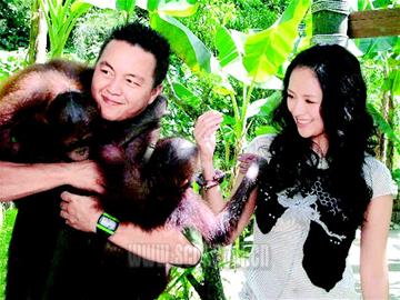 結束了成都之行沒幾日,章子怡又從香港飛往馬來西亞的沙巴,探訪那里瀕臨滅絕的紅毛猩猩。在自然保護區,章子怡與兩只孤兒紅毛猩猩Alan和Yoda來了一次親密接觸。章子怡透露,此次前往沙巴,她是帶著種種疑問去的:為什么沙巴只剩下幾千只紅毛猩猩?為什么他們的棲息地都不斷減少?為什么他們沒有足夠的食物?章子怡在那里呆了三天,與兩只小紅毛猩猩接觸,也逐漸了解到人類對環境的破壞導致了以上諸多的問題。