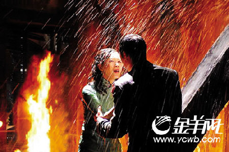 白流蘇與范柳原在戰火中深情相擁的一刻是《傾城之戀》最經典的一幕。據了解,為了再現張愛玲筆下的那段傳奇,劇組花了數月時間在香港街重新布置,力求真實地再現上世紀30年代香港的繁華。拍攝當晚,橫店影視城香港街在炮火連天中瞬間崩塌,熊熊燃燒的火光照透半邊天,到處充斥著戰火的味道,偌大的香港街在傾盆大雨中“失了火”。這些戰火和爆炸聲都是為了烘托香港淪陷后白流蘇與范柳原在劫難后重生的愛情。