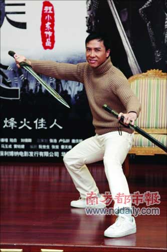 <江山美人>發布會甄子丹即場耍劍 現"大將之風"