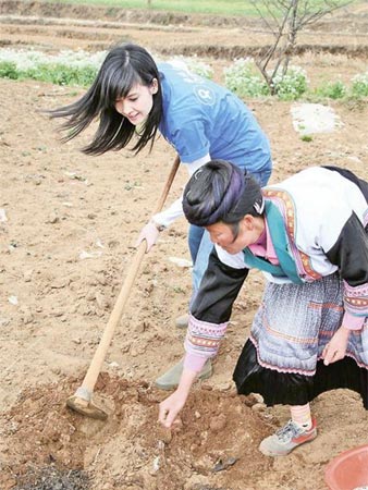 中新網4月8日電 周慧敏(Vivian)早前以“樂施會中國發展基金”樂施大使身分,到云南祿勸縣農村展開首個內地扶貧之旅,探訪當地村民及體驗他們的生活情況,一起吃農家飯、學習蠟染及繡花、耕種等。周慧敏希望將來有機會與男友倪震結伴探訪,一同感受,但首要條件是找到可靠的人照顧家中愛貓。