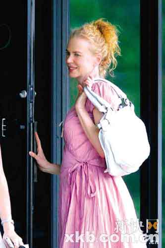 妮可紫裙映襯甜美似少女 準媽媽手爆青筋(組圖)
