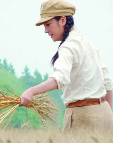 真的女文工團員為愛奮斗一生的傳奇。在拍攝現場,趙薇在高溫下割麥子。