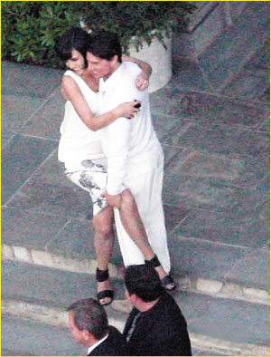 湯姆·克姆斯與凱姆·霍爾姆斯去年以3500萬美元(約合人民幣2億4500萬元)購入比弗利山豪宅,上周末舉行盛大的新居入伙派對,請來逾500人出席,包括貝嫂維多利亞、靚太伊娃、名嘴奧普拉等。穿上白色情侶套裝的靚佬湯與凱蒂,在派對開始前站在大屋門外迎賓,兩人興奮得以探戈舞的姿勢拍照。整個派對有8名警察指揮交通,亦有一部救護車與醫療隊候命。靚佬湯更重金禮聘奧斯卡主廚沃爾夫岡·帕克主理食物,又有樂隊演奏,實屬五星級派對。