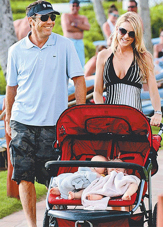 中新網6月18日電 據臺灣媒體報道,“美國甜心”梅格·瑞恩的前夫丹尼斯·奎德(Dennis Quaid)與現任妻子委托代理孕母生下龍鳳胎寶寶,但寶寶出生沒幾天便因醫院誤打超出標準劑量一千倍的血液稀釋劑,差點枉送小命。如今兩個寶貝已7個月大,健康活潑,54歲的奎德日前推他們出門“游街”,開心滿足全在臉上。