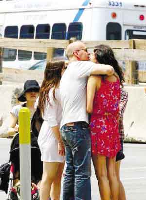 53歲的硬漢明星布魯斯·威利斯帶著29歲的小女友艾瑪和女兒一起散步。艾瑪比準(zhǔn)繼女僅大11歲,三人有說有笑儼然是一家人,有年輕小女友相伴布魯斯格外心花怒放,不時摟住女友一頓狂親大曬幸福。