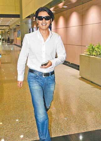昨午金城武返臺,在機場看到記者守候,大方對著鏡頭展現迷人笑容。