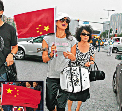 據(jù)香港媒體報(bào)道,昨日郭晶晶與吳敏霞成功奪金后,章子怡于下午約4時(shí)與母親離開(kāi)水立方,心情興奮的她不停揮動(dòng)中國(guó)國(guó)旗,但細(xì)看之下,她拿得竟是“倒裝”的國(guó)旗。想必是看到中國(guó)隊(duì)員再奪金,興高采烈地子怡并未留心此烏龍事件。