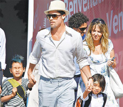 中新網8月28日電 布拉德·皮特昨日帶2名養子梅鐸斯和帕克斯到水城,外傳他將偕同女友安吉莉娜·茱莉(Angelina Jolie)出席威尼斯影展,但茱莉留在南法豪宅照顧新生兒與2個女兒,影迷想看她產后復出,可得再等。