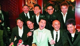 梁漢文(中)結(jié)婚,大批兄弟撐場。