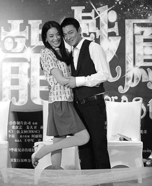 在《游龍戲鳳》中,劉德華飾演城中富豪,舒淇變身賭場發(fā)牌員,兩人演繹了一段浪漫情緣。這也是他們繼劉偉強的《衛(wèi)斯理之藍血人》后再度攜手,只不過,《藍血人》中兩人毫無感情瓜葛,但在《游龍戲鳳》中卻是專門談情說愛。昨日劉德華的右手無名指上戴著一枚戒指,和舒淇左手上的明顯是一對。對此,華仔解釋說戒指“只是片中道具”。娛樂記者們不肯輕易放過他,有人大聲問:“如果舒淇嫁給你,你會答應嗎?”劉德華隨即把難題拋給了舒淇:“你不知道嗎?我向她求過兩次婚呢,可都被拒絕了。”不過舒淇卻眼含深情地表白道:“其實他是我們所有女人心目中最好的男人。”