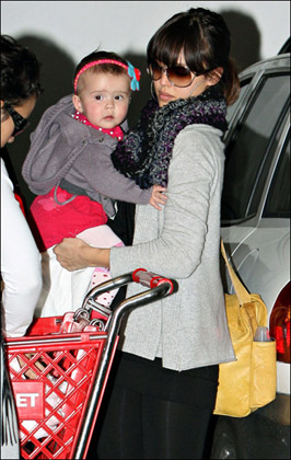 要是說模范媽媽那一定非杰西卡·阿爾芭莫屬了,每每出現,都把愛女打扮的或者像小精靈或者像小娃娃或者星范十足或者可愛十分,這次我們的小杰西卡被媽媽打扮成了小俏妞,紅色小發卡一帶,真太可愛了,太好玩了。