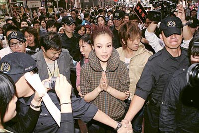 據(jù)香港明報報道,在派發(fā)海報時場面非常混亂,有否擔(dān)心人多混亂被偷摸?祖兒說她一直是做雙手護胸動作,而且Fans會自發(fā)性為她開路,她說:“Fans長大了,也不再像以前般瘋狂,不過助手都有被人拉扯。”
