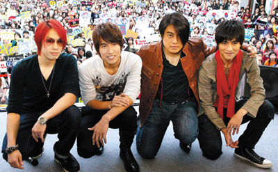 F4前天在淡水漁人碼頭發(fā)表新歌,4人合體魅力加倍,唱片銷售量暴增7000張,昨天趁勢舉辦專輯蓋印會(huì),滿足粉絲跟F4近距離接觸。面對(duì)媒體逼問,仔仔雖然心情沉重,但一站上舞臺(tái)仍擠出笑臉,溫柔地幫歌迷披上圍巾,還拱朱孝天跟歌迷舌吻。意外搶走焦點(diǎn),仔仔對(duì)F3感到不好意思,朱孝天笑說,“仔仔功力大增,我現(xiàn)在管不住他了。”
