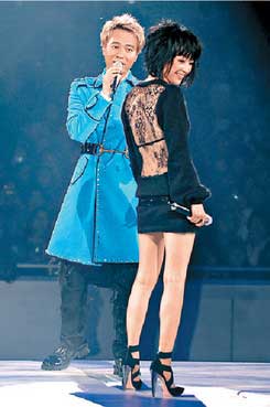 中新網2月15日電 李克勤于大年初二起在紅館開唱,連日來他邀請了多位嘉賓演出,包括陳慧嫻、梁詠琪及容祖兒等,慧嫻更以大露背裝出場。