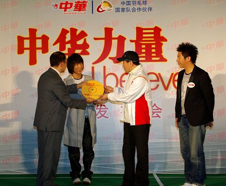 中新網(wǎng)3月21日電 中國(guó)國(guó)家羽球總教練李永波和內(nèi)地著名歌唱組合羽•泉,聯(lián)手演唱的《中華力量 I believe》在京首次公布,這是聯(lián)合利華旗下中華牙膏品牌為中國(guó)國(guó)家羽毛球?qū)φ鲬?zhàn)二零零八奧運(yùn)會(huì)而打造的歌曲。現(xiàn)場(chǎng),國(guó)家羽毛球隊(duì)出征08倒計(jì)時(shí)牌也同時(shí)啟動(dòng)。
