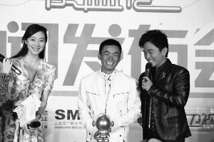 吳宗憲的嘴上涂了層淡淡的唇蜜,這讓他的兩片厚嘴唇上下翻飛起來顯得有些滑稽。站在他身邊的王寶強和韓雪毫無招架之力,從一開始就掉入了吳宗憲的“圈套”——這位老兄不管三七二十一,就給那兩個怎么看都不搭的人當起了紅娘。昨天的“無線音樂年度盛典”發布會,很快就成了吳宗憲的“耍寶會”。