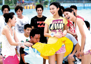 在港男中有6塊腹肌的4號陳冠標微微低頭、下巴緊縮,由下而上射出道道“銳光”,獨特的放電姿勢非常搞笑。而在抽獎送禮物給港姐環節,陳冠標把禮物充氣短裙交給比他還高的3號張舒雅,但是當他拼命為裙子吹氣,吹得面紅耳赤、青筋暴起,裙子仍不見一絲膨脹,讓眾人笑場。而10號黃文迪抽中草裙后先拿著自己圍上身,再左挑右挑好不容易挑中7號梁雅琳,和她一起裝作夏威夷女郎扭腰擺手,十分鬼馬。