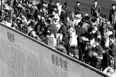 “我受不了了,壓力太大了,我沒有過,不敢給爸媽打電話,我對不起他們。”來自哈爾濱的石蕊沒有找到自己的準考證號后在現場痛哭流涕。她從6歲就開始學表演,從小就把表演當成自己的夢想。今年和她一起來參加考試的還有兩個同學,她們今天都被攔在了復試門外。多年的夢想落空,石蕊一下子無法接受,在現場就哭了出來。擦干眼淚后,她告訴記者,她還要繼續參加其他學校的考試,不會灰心。