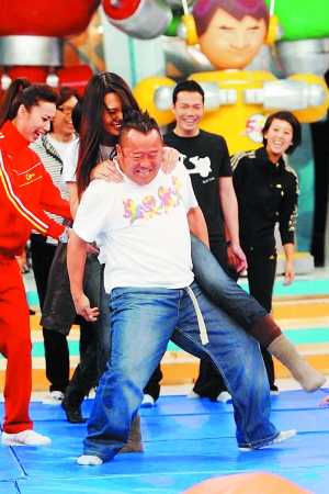 曾志偉日前放開獎門人身份,親自組隊下場玩《鐵甲無敵獎門人》。他在“人肉呼拉圈”環節中抱起有“長腳蟹”之稱的港姐呂慧儀,因二人身高相差懸殊,呂慧儀不管怎么轉,腳都不會離地,被兩位嘉賓主持譚詠麟(阿倫)、吳君如質疑犯規!志偉反擊逼阿倫下場玩,他推搪道:“不好意思,我家庭壓力大,心血少呀!”