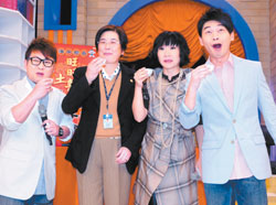 納豆(左起)、中天副總曠湘霞、陶子、阿Ken開心舉杯祝賀《大學生了沒》收視更好。