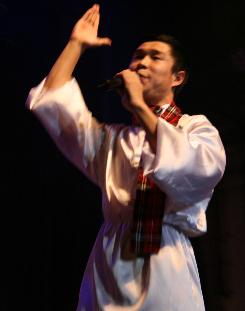 接著出場的程野干脆將褲子當成衣服穿,外加卡通吊帶褲,玩兩把器樂,搖擺肥胖的身軀肉麻地與搭檔跳起印度舞。程野在表演的過程中;經典兒歌串燒和經典曲目以程野的個人風格演唱整個體育館里掀起了高潮。最為新鮮的是小鵬飛的客串讓程野有點招架不住。