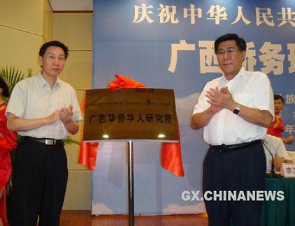 廣西僑務(wù)理論研究的重要基地——廣西華僑華人研究所9月24日在南寧掛牌成立,廣西壯族自治區(qū)政協(xié)副主席梁春祿、國(guó)務(wù)院僑辦政策法規(guī)司副司長(zhǎng)范如松為研究所揭牌,廣西壯族自治區(qū)僑辦主任李漢金、廣西社會(huì)科學(xué)院院長(zhǎng)呂余生等出席活動(dòng)。此為廣西自治區(qū)僑辦充分利用廣西社科院東南亞研究所的資源和力量,發(fā)展廣西的僑務(wù)理論尤其是對(duì)華僑華人研究工作的重要舉措。