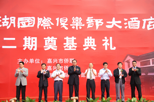 中國僑聯副主席、浙江省僑聯主席王成云、嘉興市委常委、市紀委書記馮志禮等領導以及市級有關部門、南湖區委、區政府、南湖國際俱樂部二期項目投資方、建設單位、市多家媒體等近100人出席了奠基儀式。