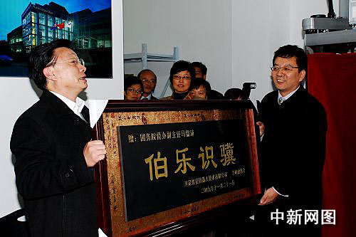 李政德博士向馬儒沛副主任贈送“伯樂識驥”匾。李克祥 攝