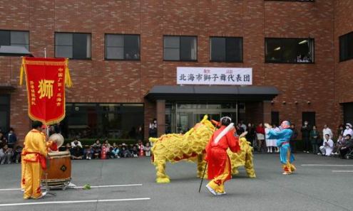 舞獅團一行參加了八代市的“妙見節(jié)”活動,拜會了八代市當?shù)厝A僑華人社團及僑領,并與當?shù)匚瑾{團進行了交流演出,考察了八代市和熊本縣的經(jīng)濟建設和社會發(fā)展情況。