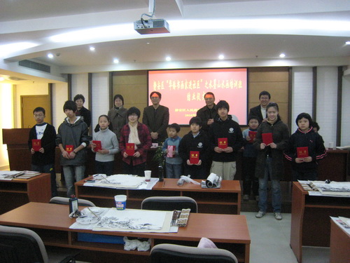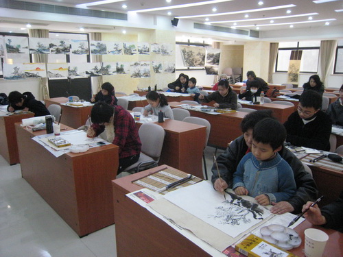 2009年12月5日由華僑青年、華僑子女、少數(shù)民族子女、困難家庭子女組成的首期山水畫班正式開班。雖然學生的水平參差不齊,而且年齡跨度很大,但經(jīng)過老師的因材施教和自己的勤奮刻苦,在兩個月內(nèi)都取得了很大的進步。