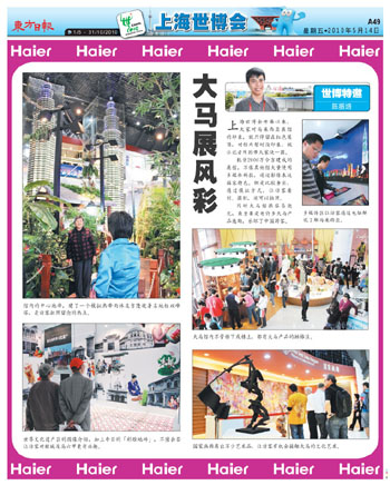 馬來西亞的中文報經常會以全版圖文方式報導新聞方便閱讀,圖為東方日報在報導世博時,介紹馬來西亞館的情況。