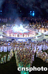 第十四屆釜山亞運會閉幕式十四日晚在釜山社稷主體育場舉行。圖為閉幕式上的主題晚會“歸鄉”一景。中新社圖 武仲林 攝