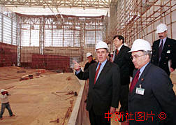 澳門總督韋奇立(前右二)五日視察施工中的澳門政權(quán)移交大典場(chǎng)館。 中新社傳真 毛建軍 攝