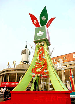 作者:姬培棟 天津火車站前廣場近日聳立起一座雄偉壯觀的“明天更美好”燈組,以表現天津市民迎接澳門回歸的喜悅心情,并祝愿祖國明天更美好。該燈組將在十二月十九日晚舉行的天津人民迎慶澳門回歸大聯歡活動中開啟。
