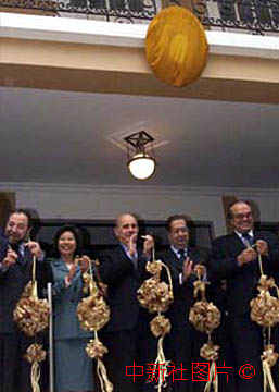 葡萄牙駐澳門領(lǐng)事館十八日開館,澳督到場祝賀并完成他在澳門的最后一次剪彩。中新社傳真 宗金柱 攝 |