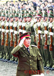 中國人民解放軍軍委副主席張萬年19日在珠海檢閱駐澳部隊。中新社數碼傳真 王瑤 攝 |