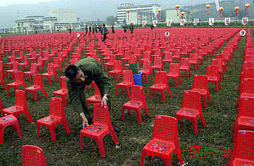 解放軍駐澳部隊戰士18日在珠海軍營擺放座椅,為明天的歡送會布置會場。中新社數碼傳真 王瑤攝